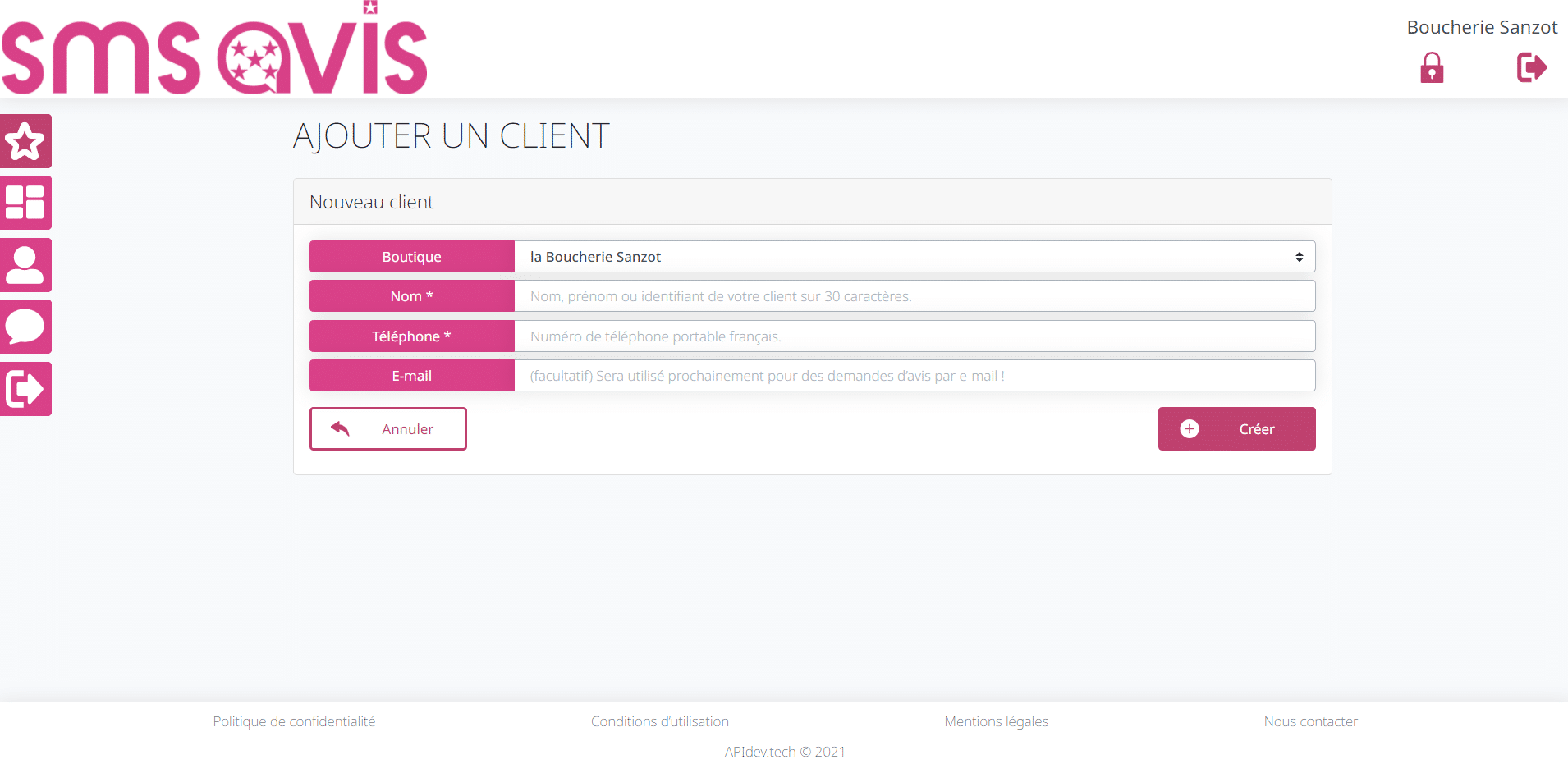 Après avoir créé votre compte sur SMS Avis, vous pouvez ajouter très rapidement vos clients en indiquant leur nom, leur prénom, un numéro de téléphone et éventuellement un mail.